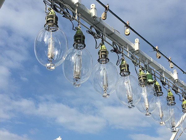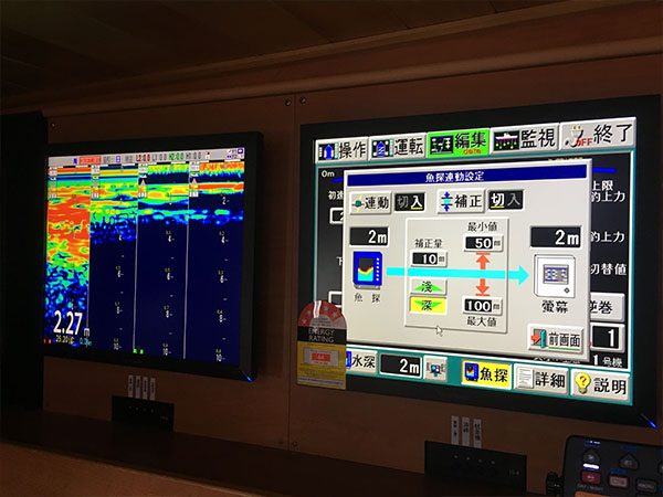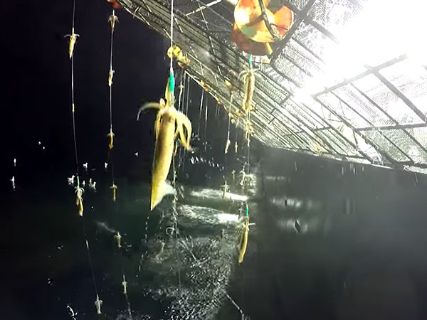 海富船隊配置自動魷釣機,魷魚具趨光性,夜間浮至上層覓食,當魷釣機運轉,自動投放釣線和上揚,魷魚見到燈光聚集船邊,爭食假餌而上鉤。上鉤魷魚隨釣線上揚觸及伸出船邊網台前端滾輪,自動落入網台,順勢滑入船邊導槽內,由船員夥伴選別分級裝入凍結盤急速冷凍。 聰明效能 植入E化感知系統 引進「日本負荷感知技術」偵測海況,即時掌握漁況,配合自動魷釣機作動, 提高漁場探測效率、節省漁業經營成本。 凍結美味 完美呈現 將肥美的阿根廷魷魚捕撈船上後,由船員夥伴們選別分級,裝入凍結盤急速冷凍,因此肉質飽滿、緊緻鮮彈口感鮮甜,深獲客戶㇐致好評。